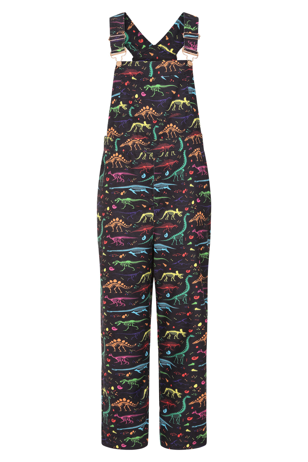 Our dungarees are designed for comfort and movement, created in a lovely soft corduroy fabric. This beauty sits in all the right places! A quirky and colourful print featuring dinosaur bones and fossils.