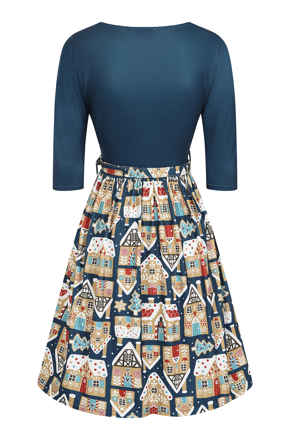 This dress fits beautifully. It is true to size and fits just below the knee on my 5'7 frame. The material is lovely and soft. I cannot wait to wear it to my school Christmas Party.