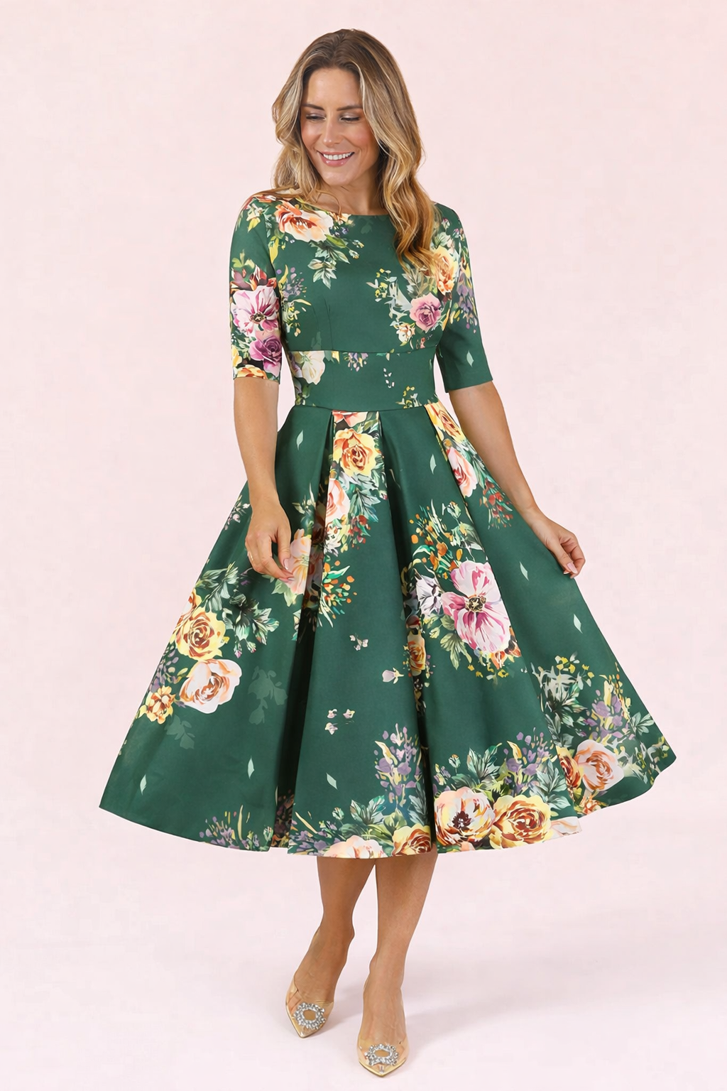 This beauty is set on a gorgeous Forest Green background with striking flowers and roses. Making this the absolute must-have this season!!