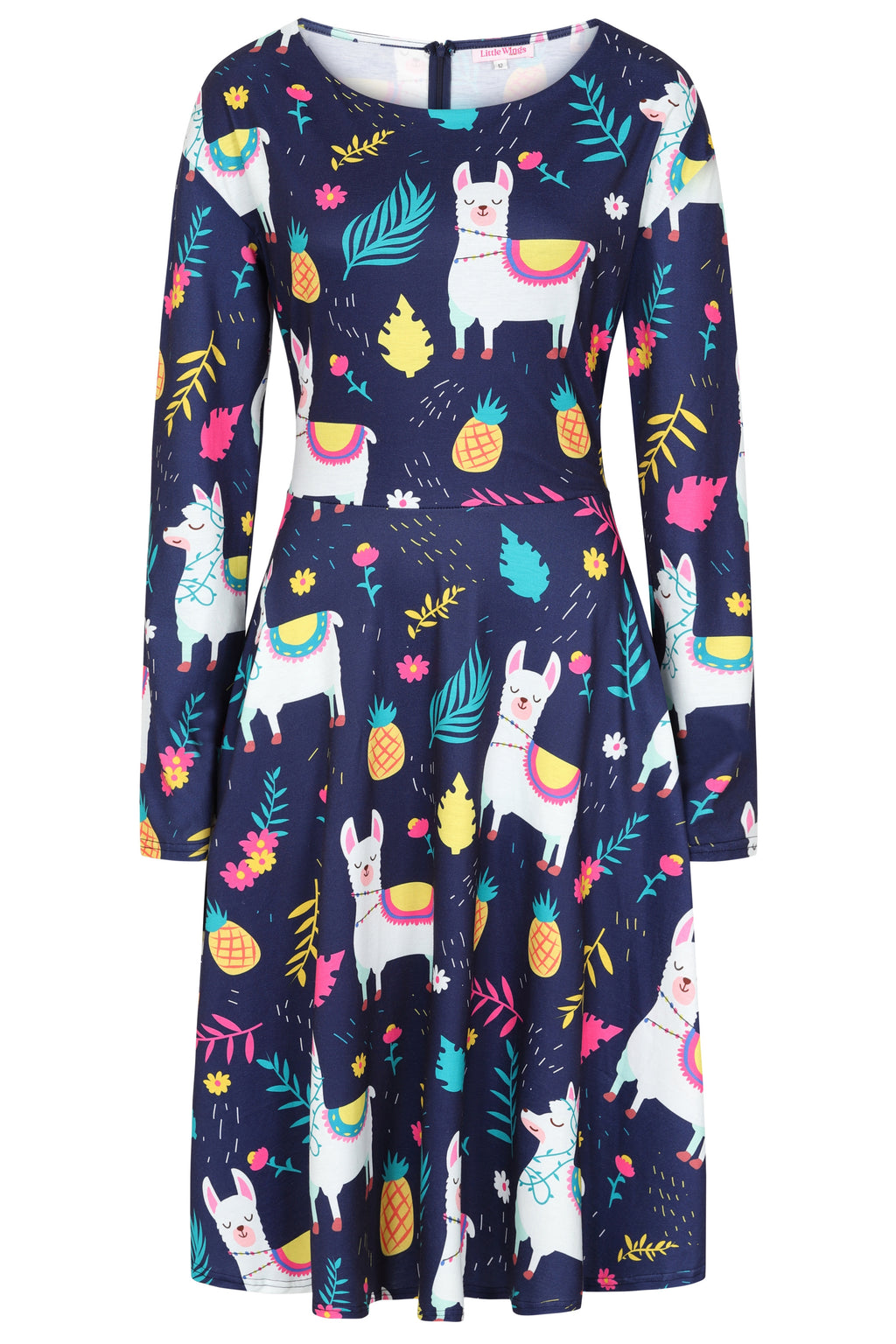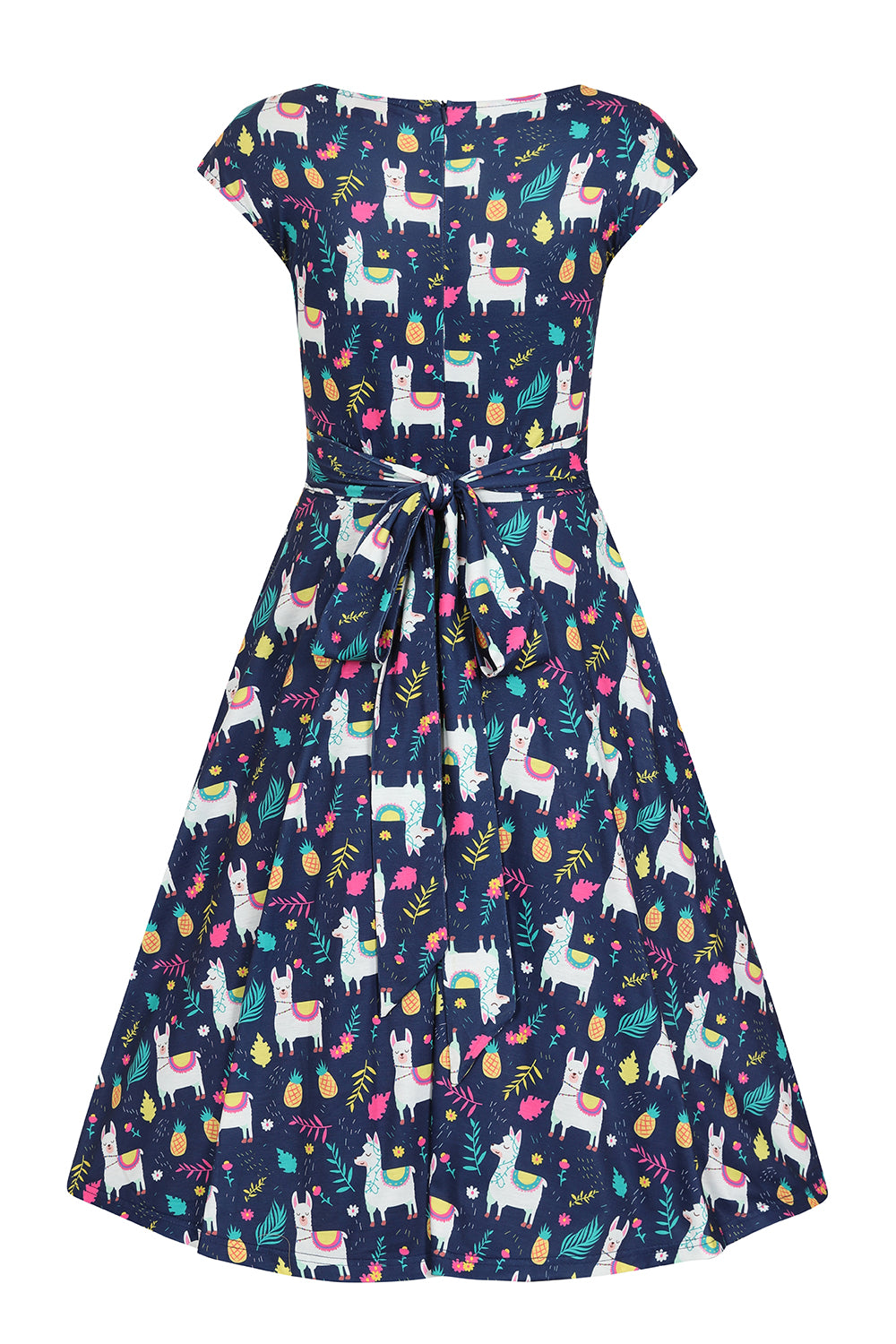 I've worn this dress a few times now. I adore the fit of the dress it is so flattering. The material is soft and best thing it has pockets! The llamas make me smile.
